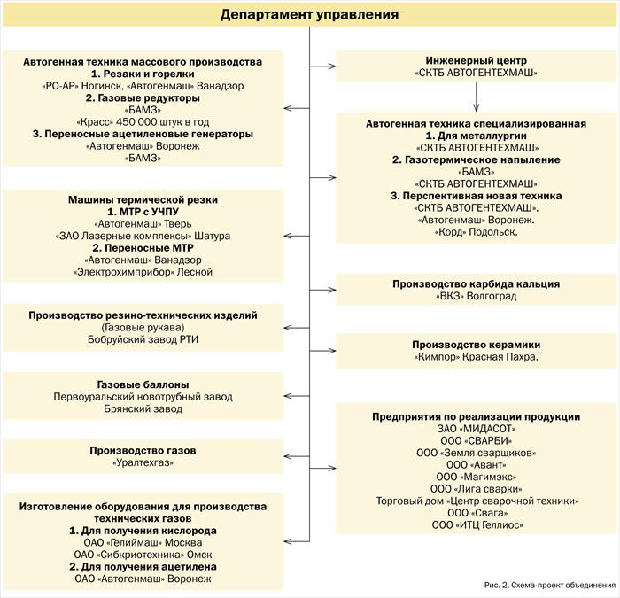 Модернизация ведущих предприятий для организации современных производств автогенной техники. Схемапроект объединения представлена на рис. 2.