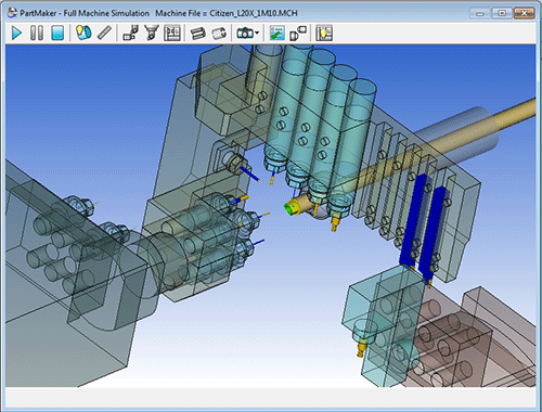 Производство фирмы Micron Manufacturing оснащено различными станками с ЧПУ, в том числе, автоматами продольного точения Citizen L-32 самой большой модификации. Эти токарные станки-автоматы оснащены пятью резцедержателями, четырьмя приводными шпинделями, противошпинделем и четырьмя резцами для обработки тыльной стороны детали. «Разработка управляющей программы для такого станка вручную практически невозможна, но при помощи PartMaker это делается просто», — делится опытом г-н Виллинг, — «Посредством PartMaker мы можем выполнить на компьютере комплексную 3D-симуляцию обработки детали, благодаря которой мы точно знаем, каков будет итоговый результат еще до начала работы станка. Тем самым мы экономим много времени».