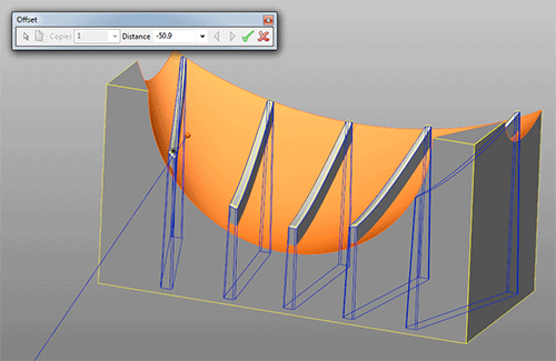 Функции «Прямого моделирования» дают возможность легко и быстро перемещать поверхности с учетом изменения сопряженных элементов. Например, перетаскивание поверхности с отступом на заданную величину позволяет «отдалить» нерабочие поверхности от участка прожигания.
