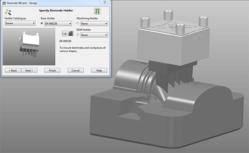 В процессе компьютерной 3D-симуляции электроэрозионной обработки пользователь может воспользоваться стандартными каталогами держателей фирм Erowa, Hirschman и System 3R, либо добавить в редактируемую базу данных стандарты собственного предприятия.