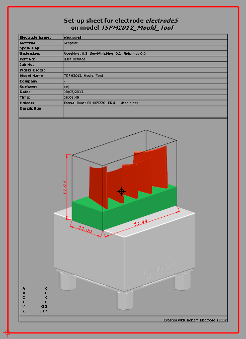 Технологические карты для производства и использования электродов могут генерироваться Delcam Electrode автоматически в соответствии с выбранным шаблоном, который может быть настроен под стандарты конкретного предприятия. Автоматическая генерация технологических карт обеспечивает постоянную доступность всей информации по проекту на всех стадиях производственного процесса. Комплект сопроводительных документов может быть оформлен в виде чертежей, HTML-файлов или электронных таблиц Microsoft Excel. Благодаря этому взаимодействие между вовлеченными в проект специалистами становится более легким и быстрым. Кроме того, автоматическая генерация технологических карт позволяет проще наследовать информацию из ранее выполненных проектов.
