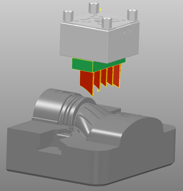 Для конструирования электродов в арсенале PowerSHAPE имеется большой набор функций прямого 3D-моделирования, плюс специальная команда «Тело-Пуансон». Пользователь должен мышкой указать на CAD-модели конечного изделия группу поверхностей, определяющих геометрию будущего электрода, а затем при помощи функции «Тело-Пуансон» сконструировать на их основе тело электрода. Затем с помощью функций прямого моделирования можно:
