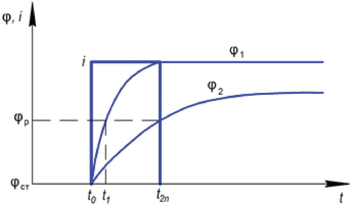 Согласно этой модели (рис. 1) анодный потенциал возрастает во времени при наложении тока, причем, чем больше локальный межэлектродный зазор, тем меньше скорость нарастания потенциала. Это означает, что при достаточно коротком импульсе тока анодный потенциал ?2, соответствующий большему зазору а1, не превысит потенциала растворения материала анода, и растворение на данном участке не произойдет. В области малых зазоров (а < а1) потенциал ?1 > ?р, и растворение анода будет иметь место. Таким образом, выполняется условие (6), и обеспечивается высокая локализация процесса растворения (растворяется материал анода только в области малых зазоров). Это предопределяет высокую точность копирования формы катода-инструмента.