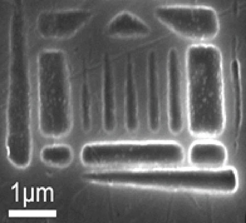 С помощью вольфрамового инструмента получены трехмерные структуры на никелевом образце с размерами порядка 10…100 нм и глубиной 400 нм (рис. 6). Это удалось достичь путем применения ультракоротких импульсов тока длительностью около 2 нс [8].