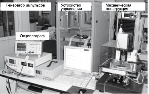 Представленные выше технологические результаты получены на опытно-экспериментальном оборудовании. На рис. 7 показана установка для микрообработки, включающая в себя генератор импульсов, устройство управления, механическую конструкцию со столиком для установки заготовки и сервоприводами, рабочую головку с элеткродом-инструментом.
