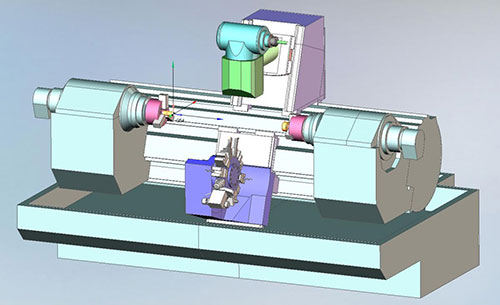 Обработка токарно-фрезерных обрабатывающих центров — как показатель учета сложной кинематики станка: токарные шпиндель и противошпиндель, токарная револьверная головка с приводным инструментом и фрезерная 5-тикоординатная головка (рис. 3, рис. 4).