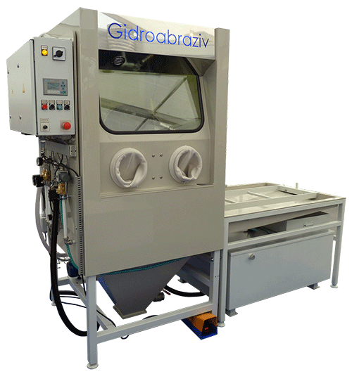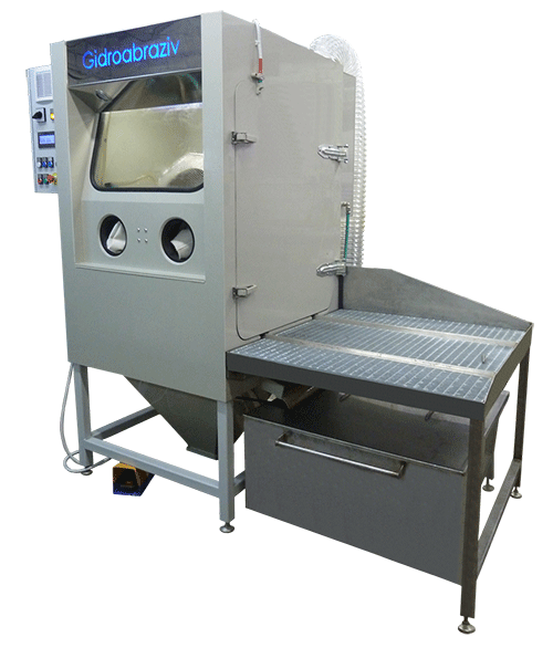Современные установки ГАО — это герметичные камеры с ручной обработкой, автоматы, установки с ЧПУ с замкнутым циклом воды и абразива, оснащенные кабиной из полимера, вращающимся столом, системой перемещения струйных аппаратов, системой шламоотделения и вентиляции.