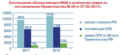 На российском рынке поставщиков МО для предприятий ВПК работает порядка 270 организаций, из которых 15 обеспечивают 70–75% всех заявок. А остальные 70% из числа дилеров поставляют по 1–2 единицы оборудования в год в обход 56 постановления. Здесь кроется другая опасность, заключающаяся в том, что на предприятия ВПК допущены фирмы-однодневки, которые, как правило, не обеспечивают необходимых гарантий или сервисную поддержку, не решают технологические проблемы при создании новых образцов продукции. В этом проявляется местничковый интерес, как предприятия, так и поставщика оборудования. Постановление № 56 призвано убрать таких поставщиков с рынка. Приведенная статистика показывает — документ не запрещает поставку импортного оборудования, он отсекает низкий по техническому уровню и качеству товар, то есть создает условия по поставке современного высокотехнологичного наукоемкого оборудования. Рабочая группа Ассо-циации в 60–65% запросов рекомендует выдачу разрешения на ввоз оборудования, и только в 30–35% принимаются решения о наличии российских аналогов. Таким образом, документ работает и защищает отечественного производителя. Анализ всех заявок, поступающих от заводов ВПК, подтверждает — нам нужен рынок, чтобы отрасль имела динамику развития. А сейчас, из 7 000 оборудования, поступившего на предприятия оборонно-промышленного комплекса, через механизм 56 постановления прошло только 1700 ед.