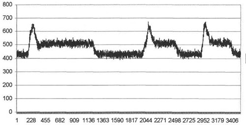Измерение начиналось при отсутствии контакта заготовки с инструментом, далее происходило плавное врезание инструмента на заданную глубину, выдержка для установления процесса резания и через некоторое время его плавный отвод. Затем производилось два таких же врезания, и после этого измерение прекращалось. Определение силы осуществлялось как среднее арифметическое трех измерений. Силы в каждом из измерений определялись из гистограмм как среднее арифметическое значение на осциллограмме за период установившегося процесса.