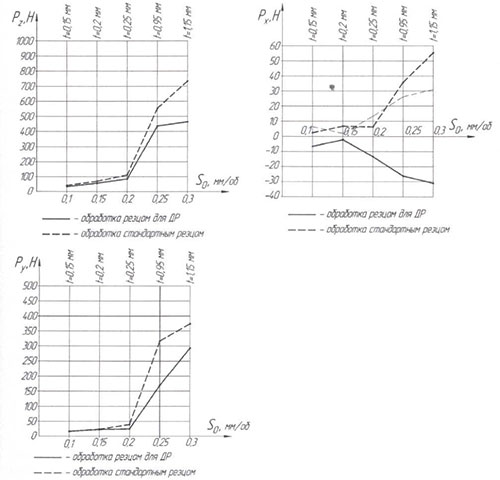 В результате сравнения сил резания при обработке резцами для ДР с различными углами в плане и стандартным резцом были сделаны следующие выводы: