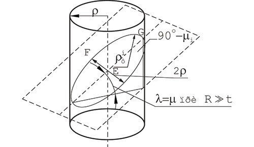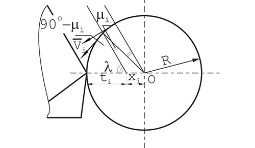 Так как главную режущую кромку можно представить в виде части цилиндра с радиусом ? (рис. 7б), то ?ф можно определить в сечении этого цилиндра плоскостью под углом ?i.