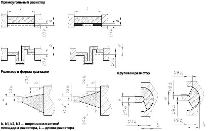 Рис. 1. Виды предельного съема материала при подгонке резисторов различных типов.