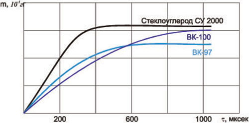 Рис. 2. Характерный временной ход выноса массы керамики в течение времени