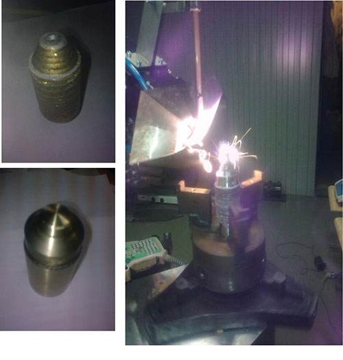 Рис. 10. Процесс лазерного легирования и полученные детали.