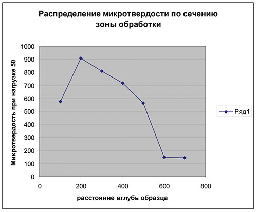 Рис. 5. Распределение микротвердости по сечению зоны обработки.
