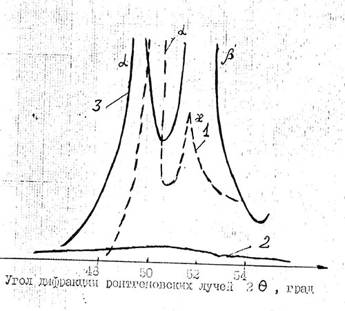 Рис. 3 Размытие дифракционных линий при лазерной поверхностной обработке из расплава БрАЖНМц9-4-4-1