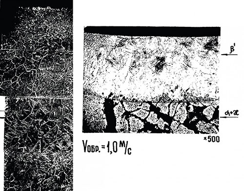 Видно, что в поверхностном слое наблюдается перекристаллизация поверхностного слоя бронзы, связанная,