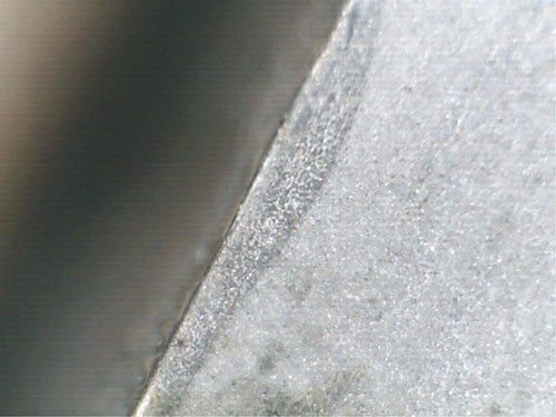 Рис. 12. Зона упрочнения на резьбе стали 32 ГСФ, полученной на режиме 2 кВт, скорость 200 мм/с, диаметр луча 4 мм.