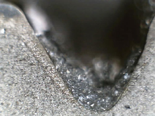 Следует отметить, что режимы, отработанные на плоских образцах, не подходили для режимов упрочнения резьбовых поверхностей, что связано с уменьшением сечения теплоотвода, поэтому первые опыты по упрочнению резьбовой поверхности привели к оплавлению профиля резьбовой поверхности. Режимы обработки были откорректированы в сторону уменьшения мощности и повышения скорости обработки. Так скорость обработки при упрочнении была повышена в 1,5 раза.