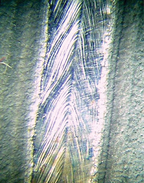 Следующим исследованием стал анализ сварных швов стальных прутов. Соединения были выполнены угловым способом по внутренней стороне газовой сваркой. Соединялись пруты разного диаметра трёх видов сталей: ст. 10 O57?3,5 мм, ст. 10 O108?3,5 мм, ст. 2 пс O21,3?2,8 мм и ст. 3 пс O159?4,5 мм. Каждый вид соединения был выполнен кислородом и ацетиленовой смесью. Основной задачей исследования было определение разницы в составе ацетиленовых и безацетиленовых швов разных комбинаций сталей.