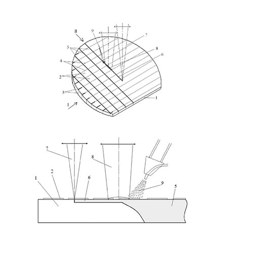 На рис. 3 представлена схема лазерной резки приборных пластин на кристаллы, сочетающей метод ЛУТ и нанесение неглубокого надреза во втором направлении с помощью УФ-лазера.