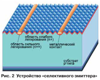 Наиболее перспективное применение лазера связано с попытками одновременного создания канавок или отверстий и лазерноиндуцированное легирование поверхности. Дело в том, что в зоне, непосредственно примыкающей к контакту, как правило, целесообразно создать область более высокого легирования, чтобы уменьшить рекомбинацию носителей и тем самым увеличить КПД. Лазерностимулированное легирование (laser doping) может быть осуществлено одновременно с процессом формирования канавок и отверстий.