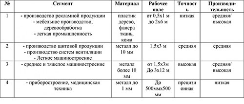 Попробуем на примере потребителей станков лазерной резки провести некоторое сегментирование потребителей данного оборудования и определить требования, которые могут быть предъявлены к системе перемещения.