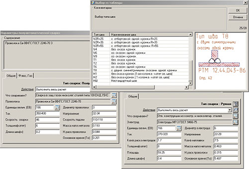 Рис. 3. Расчет режимов сварки.