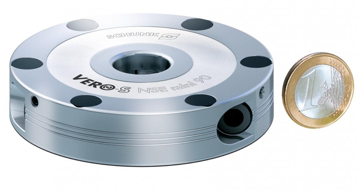 Однако прогресс не стоит на месте, и в ответ на требования заказчиков компания SCHUNK продолжает расширять ассортимент быстросменных палетных систем VERO-S. В 2011 году был разработан самый тонкий в мире модуль для быстросменной паллетной системы – VERO-S NSE Mini (рис. 1). Его диаметр 90 мм, а высота всего 20 мм, и это делает его лучшим решением с точки зрения экономии пространства рабочей зоны станка и зажима небольших заготовок напрямую.