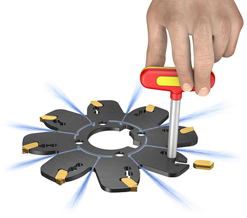 Конструкция посадочного гнезда фрезы CoroMill QD позволяет производить замену пластин, не повреждая опорные поверхности. Наклон гнезда под углом 20° и направляющая на посадочной поверхности создают благоприятное направление сил резания, повышая стабильность и надёжность закрепления. Специальный быстроразжимной ключ помогает с лёгкостью извлечь изношенную пластину, а затем закрепить новую в том же самом положении и с постоянным усилием зажима. В итоге получается двойная выгода. Во-первых, гарантируется высокая точность обработки при каждой смене пластин. Во-вторых, фреза очень проста в эксплуатации: пластины можно заменять прямо на станке.