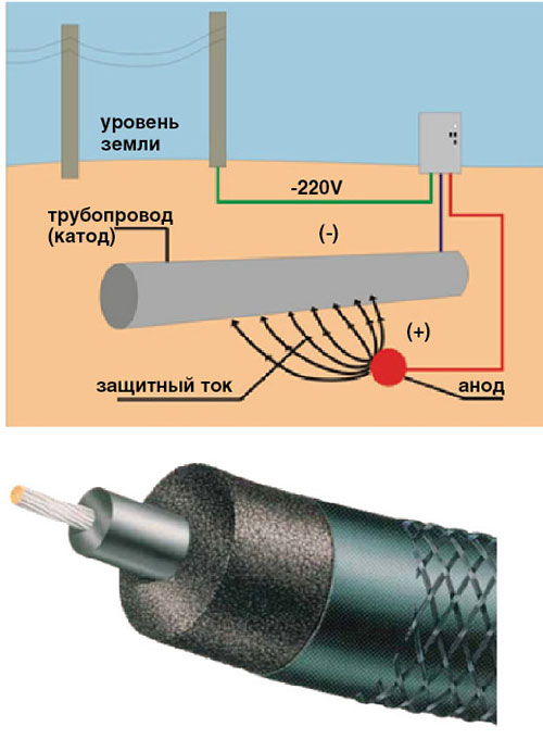 Рис. 6. Использование высокоэлектропроводящих пластиков в кабелях анодной защиты.