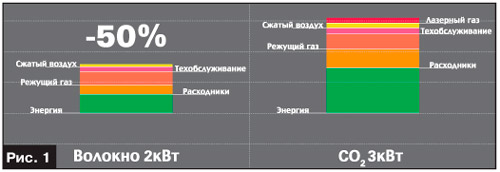 Начало активных продаж в январе 2009 года установок нового поколения лазерного раскроя материала SALVAGNINI L1Xe, имеющих в качестве источника лазерного излучения оптоволоконный лазер, позволило SALVAGNINI сделать качественный рывок на рынке лазерного оборудования. Оптоволоконный лазер существенно снизил эксплуатационные расходы на станок (рис. 1).