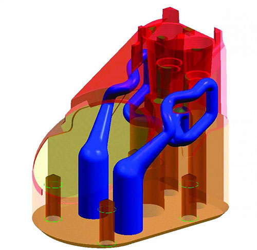 Тонкие знаки сложной формы имеют криволинейные каналы охлаждения (обозначены синим цветом на рис. 4), которые невозможно было бы выполнить другим способом.