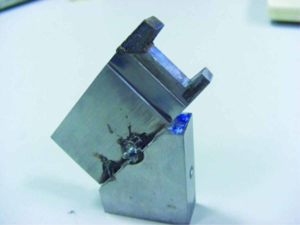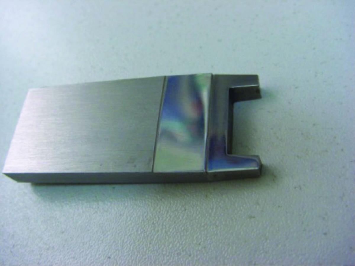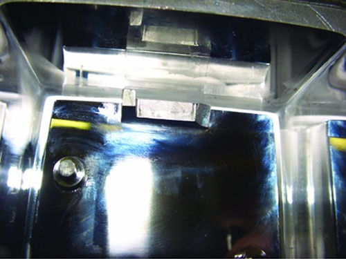 Применяя оборудование послойного расплавления порошка, стало возможным легко восстанавливать поврежденные части формообразующей оснастки. При этом износостойкость и прочность восстановленных частей удается выполнить не хуже, чем оригинальных деталей. Компания «Смирнов Технологии» совместно с ОАО «НИАТ НТК» выполнила ремонт формообразующего знака пресс-формы (рис. 8).