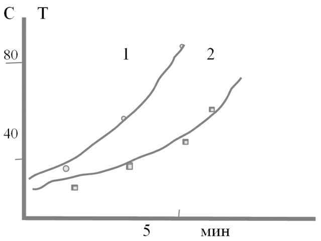 Данные результатов измерения времени нагрева до данной температуры приведены в таблице 1.
