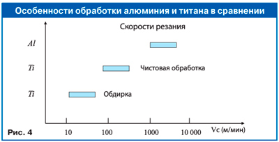 Несмотря на такие положительные свойства титана, он имеет недостаток: изза своей прочности титан и его сплавы относятся к труднообрабатываемым материалам. На его обработку затрачивается времени в 1012 раз больше, чем на обработку алюминия. К тому же титановые материалы при нагревании в процессе обработки склонны к склеиванию (наростообразованию) и разъеданию лезвия инструмента. При этом изза высоких прочностных свойств титана для его обработки требуются другие условия, по сравнению с материалами, когда применяют обычные станки и инструменты. Поэтому скорости резания обычно составляют менее одной трети от скорости резания стали. Авиационные детали традиционно имеют низкий коэффициент использования титана (снимается до 90% металла).