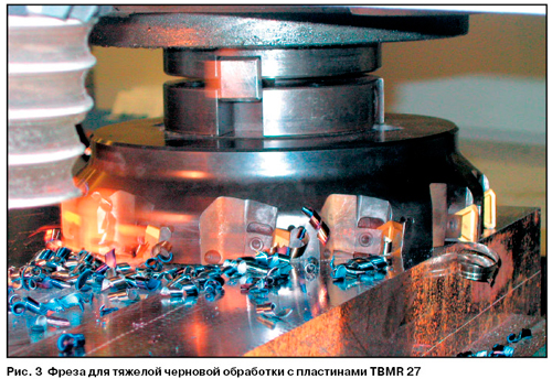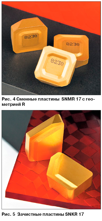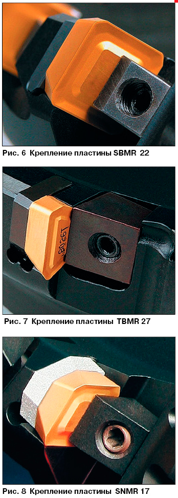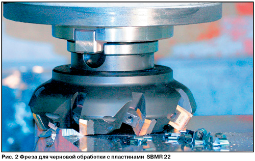 С точки зрения конструкции и геометрии инструмента черновая фреза с пластинкой SNMR 17 является более позитивной, чем стандартные инструменты, предназначенные для проведения черновых операций. При рассмотрении концепции конструкционного решения корпусов фрез, способа крепления пластин и примененных элементов в случае фрезы с SNMR 17 видно, что был применен опыт, проверенный в конструкции черновых фрез для тяжелого резания с пластинами SBMR 22 (рис. 2).