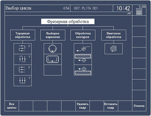 Стандартные циклы обработки фрезерной версии включают торцевое и контурное фрезерование, обработку всех типов карманов, винтовую интерполяцию, сверлильно-расточные циклы.