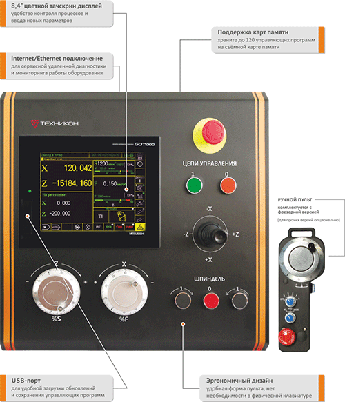 Главная особенность системы — возможность создания управляющих программ без использования кодов ISO. Для обработки детали оператору достаточно ввести параметры непосредственно с чертежа в стандартные технологические циклы. При этом параметры обработки отображаются на эскизе соответствующего цикла, что значительно упрощает работу с системой для персонала, не имеющего опыта работы на станках с ЧПУ. На освоение такой системы оператору без специальных знаний требуется не более недели, а у производителя появляется возможность сокращения штата персонала (наладчиков, технологов-программистов) и уменьшения фонда заработной платы.