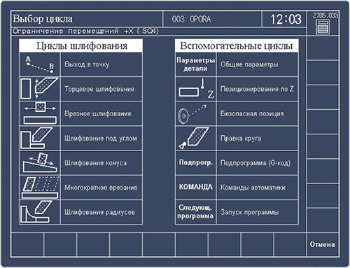 Стандартные циклы обработки шлифовальной версии включают врезное шлифование торцом и периферией круга, шлифование с осцилляцией, выполнение операций совместно с датчиками активного контроля, контурную правку круга, обработку радиусных и наклонных поверхностей.