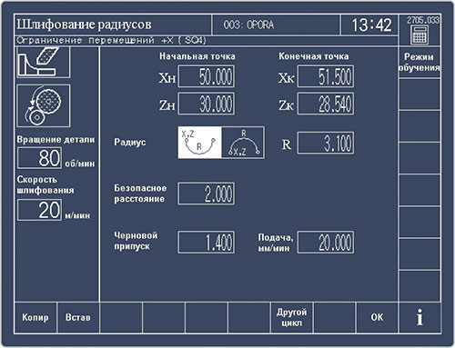 В цикле шлифования радиусов достаточно задать начальную и конечную точки, а также радиус скругления.