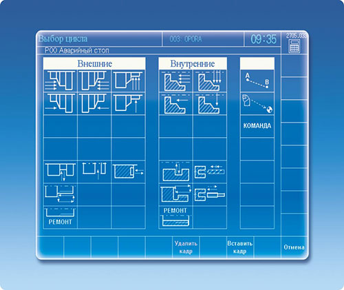 Также система позволяет хранить и копировать рабочие циклы с целью их последующего применения при обработке других деталей или при работе с другим инструментом. Имея возможностью хранения до 120 технологических управляющих программ, система позволяет экономить значительную часть времени на переналадку станка. Для этого оператору достаточно вызвать ранее подготовленную программу и установить нужный инструмент. Таким образом на станке, оснащенном ОСУ, программа изготовления детали изменяется по мере необходимости самим оператором, а не специально подготовленным программистом-технологом. При этом контур детали мгновенно отображается на экране управляющей панели. Среди дополнительных помощников оператора можно также выделить вспомогательные модули по заданию фасок и радиусов скругления, что еще больше упрощает работу на станке. Таким образом, даже в случае изготовления деталей со сложной геометрией, в том числе конусов, сфер, резьб, оператор избавляется от использования сложных приспособлений и осуществления переналадок станка.