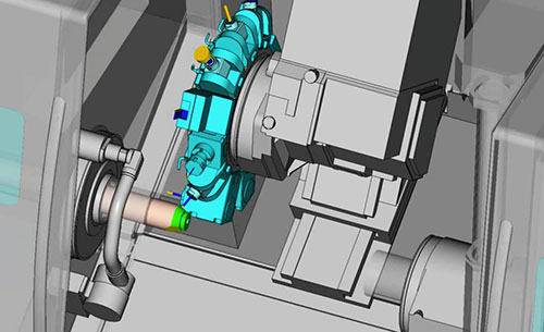 Рис. 2. PartMaker 2015 позволяет программировать обработку при помощи револьверной головки, оснащенной независимым поворотным приводным инструментом.