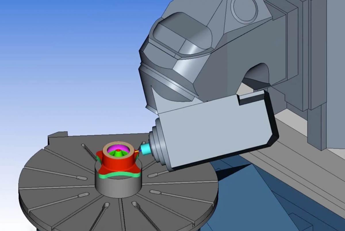 Рис. 3. В PartMaker 2015 можно разрабатывать управляющие программы для пятиосевых фрезерных станков с наклоняемой шпиндельной головкой и поворотным столом.
