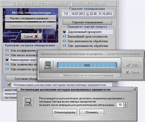 Рис. 3. Интерфейс процедуры оптимизации производственного расписания (MES «ФОБОС»).