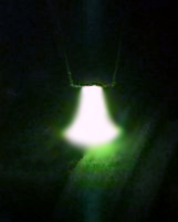 Рис. 2. плазменная дуга (слева) и закаленная полоса с цветами побежалости.