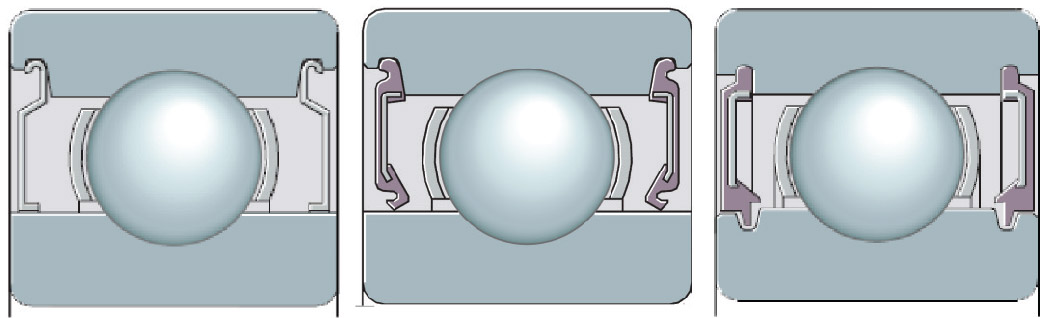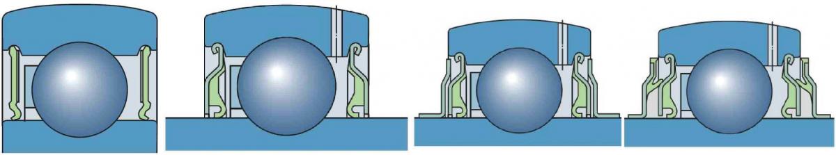 Производители подшипников предлагают уплотнения различной конструкции. Их можно разбить на три группы: бесконтактные; контактные; уплотнения малого трения. На рис. 2 показаны бесконтактные уплотнения подшипников фирмы SKF. Они представляют собой стальные штампованные шайбы, неподвижно устанавливаемые в наружное кольцо подшипника. Нижняя кромка шайбы с внутренним кольцом подшипника образует лабиринтное уплотнение.