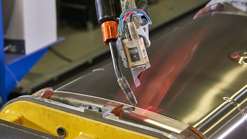 Дополнительно робот оборудован лазерным он-лайн сенсором CST Flex D, который перемещается в запрограммированную начальную позицию, затем сенсор следит и измеряет сварочную область в процессе сварки.