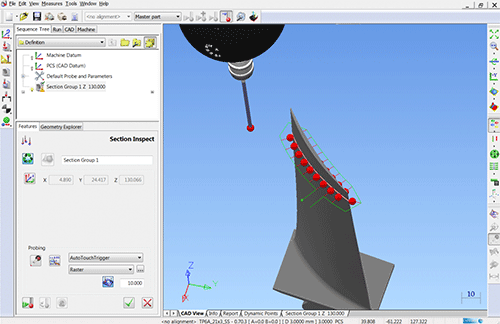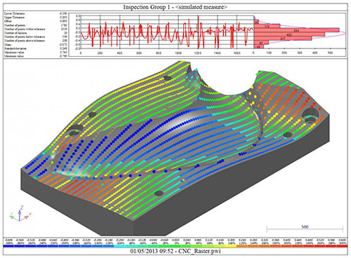 Другое значимое достоинство PowerINSPECT, исключительно важное при программировании последовательностей измерений на КИМ с ЧПУ, заключается в возможности 3D-симуляции процесса измерений на компьютере с учетом геометрии и кинематики КИМ, формы детали и крепежного приспособления. Применение PowerINSPECT позволяет еще на этапе программирования выявлять все возможные столкновения, предотвращая тем самым поломки и простой дорогостоящего оборудования.