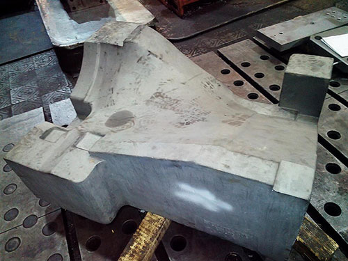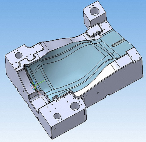 С проблемами, обусловленными несоответствием фактической формы заготовки с ее теоретической CAD-моделью, столкнулись специалисты Ижевского завода штампов и пресс-форм «ИжРЭСТ» (http://izhrest-ru.all.biz). Габаритные размеры заготовок (рис. 1) составляли более 1200х900х500 мм, а время обработки формообразующих поверхностей на станке с ЧПУ превышало 200 часов. В процессе обработки заготовок из жаропрочных сплавов марок ЭП-202 и ЖС6-У наблюдался повышенный износ режущего инструмента, вызванный неравномерностью припуска обрабатываемого материала, а также была отмечена низкая эффективность управляющих программ из-за многочисленных проходов инструмента на рабочих подачах вне зоны контакта с заготовкой.